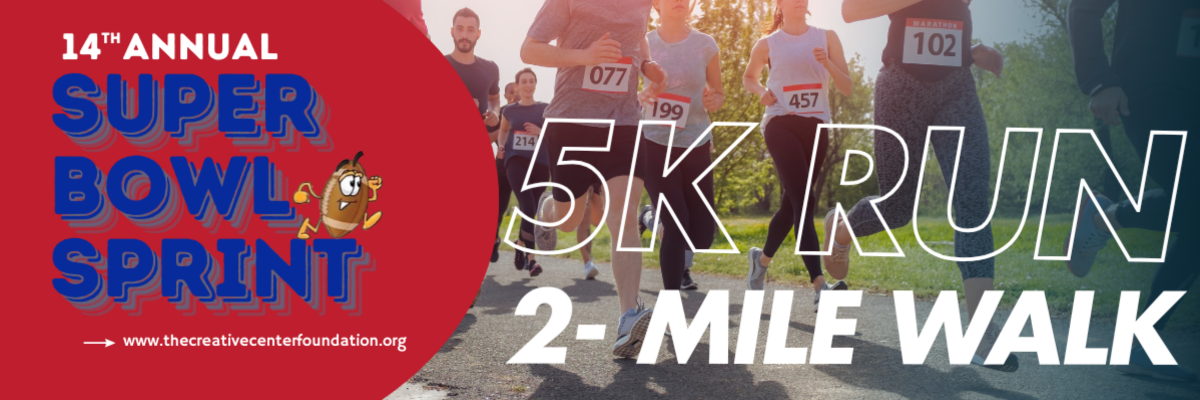 Get those running shoes ready! It's time to lace up for a great cause with Creative Center Foundation's Fourteenth Annual Super Bowl Sprint. Our goal with this 5K race & 2-mile walk is to raise funds needed to complete capital improvement projects at the Creative Center to ensure a safe and accessible environment for our clients. We invite you to join us to help make a difference! Proceeds from this event will be used for capital improvements to the Creative Center facility so that artists with developmental disabilities can continue to be empowered. Become a sponsor or register now, and let's make a positive difference in our community!