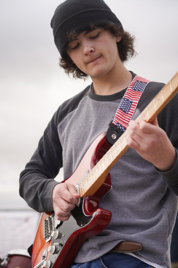 The Rock Band is an auditioned ensemble that rehearses weekly, featuring a rhythm section (keyboard, drums, bass, guitar) and wind instruments (saxophones, trumpets, trombones, baritones). Other instruments may join with director approval. The group also performs at winter home basketball games.