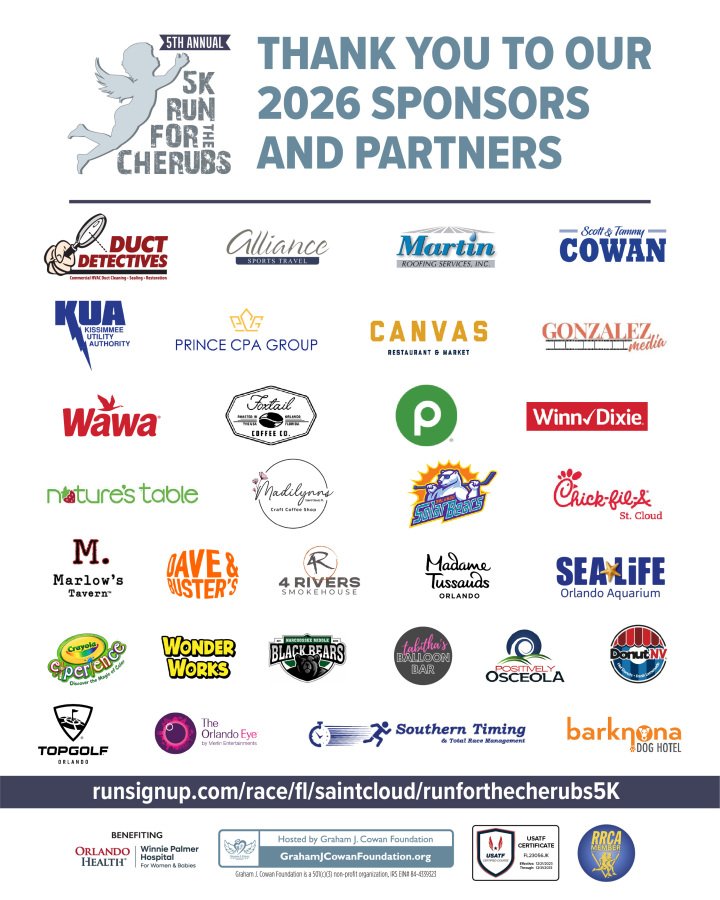 Thank you for visiting our website! We appreciate your continued support for the Annual Run for the Cherubs 5K, benefitting Orlando Health Winnie Palmer Hospital for Women & Babies, and Hosted by Graham J. Cowan Foundation. With your help, to date, we have raised and gifted Over $41,000 to Orlando Health Winnie Palmer Hospital for Women & Babies in Graham's memory.