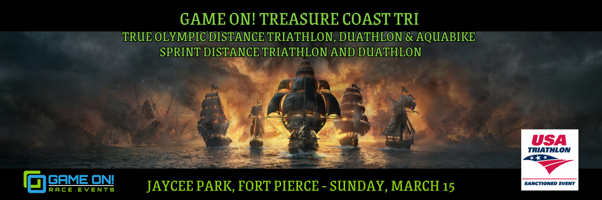 The 8th Annual Game On Treasure Coast Triathlon will take place on Sunday, March 15th at Jaycee Park on Hutchinson Island. Sprint Distance Triathletes will start from the beach before heading out on a 1/4 mile swim in the calm waters of the Indian River Lagoon, followed by a 12.5 mile flat and fast, out and back bike course along A1A, and end the race with a 3.1 mile run on A1A and along the scenic Fort Pierce inlet. Olympic distance triathletes will complete a .9 mile swim, 24.8 mile bike and 6.2 mile run along the same beautiful course. Now offering the Duathlon in both Sprint and Olympic Distances! Each will start with a 1 mile run in place of the swim. This is a great race for beginners.