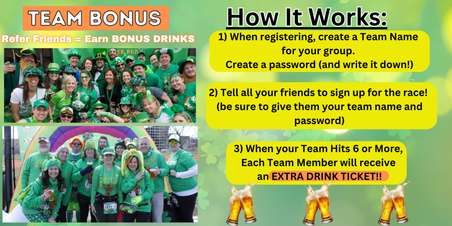 (Includes Short Sleeve Shamrock Shifting Shirt, 5K Medal, Cinch Sack, Beer Cup, BEER on 5K Course & a Pint of Beer)