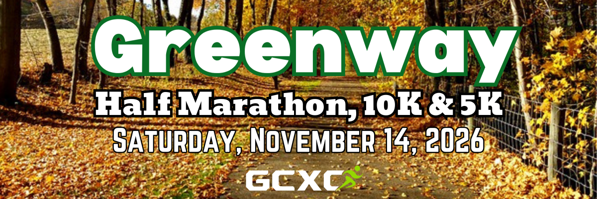 Join GCXC Racing for the fourth annual Greenway Half Marathon, 10K & 5K on Saturday, November 14th, 2026.