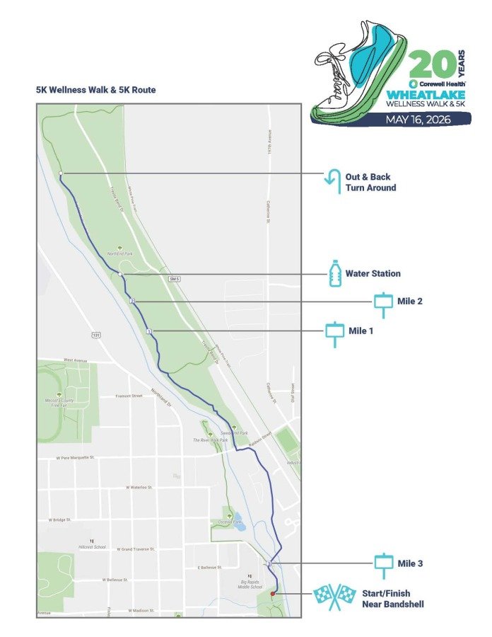 Race proceeds will benefit the Susan P. Wheatlake Cancer and Wellness Fund, an endowment of the Corewell Health Foundation Big Rapids & Reed City Hospitals. The fund provides resources, programming and services that directly impact cancer patients and their families in our region.