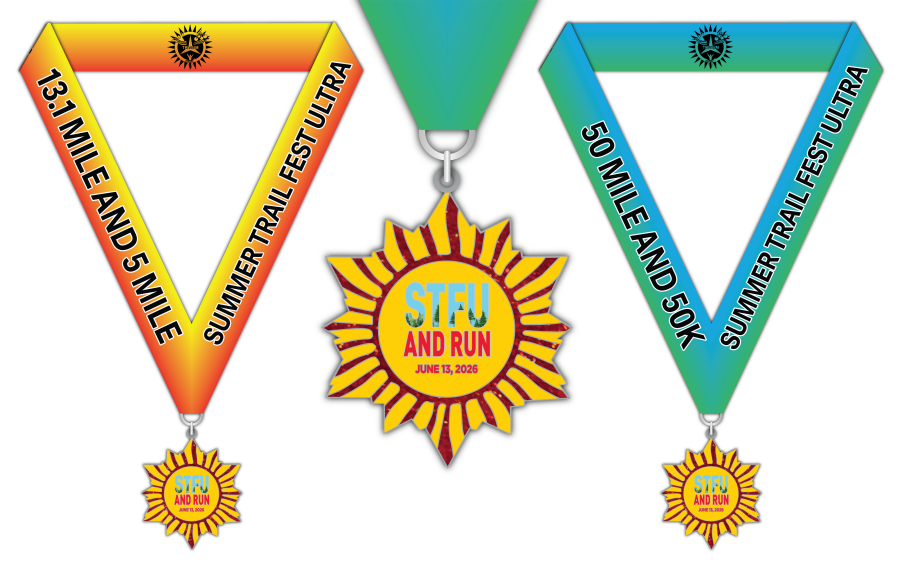 Then, come back in June for the Summer Trail Fest Ultra (50K), Half Marathon, or 5 Mile to complete the series and claim your connecting STFU medal.