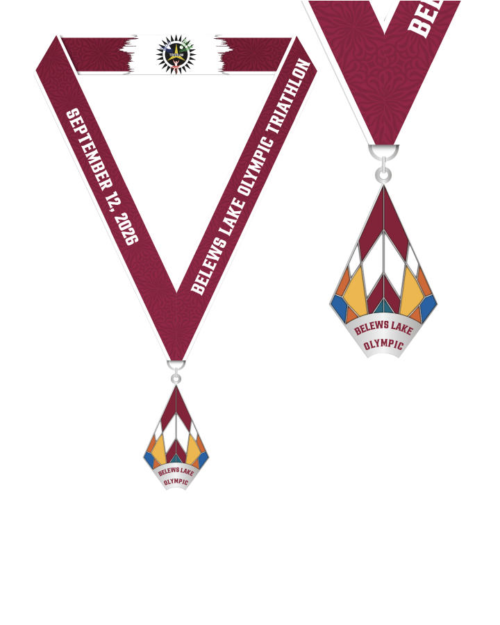 Belews Lake Olympic Tri is the fourth of five races in the North Carolina Multisport Medal Series. Finisher medals from each race in the series connect to form a dazzling sun catcher.