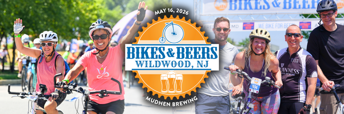 Register for Bikes & Beers Wildwood - Bike Ride & Beer Festival 2026, the premier cycling event series departing from MUDHEN BREWING in Wildwood, NJ! Choose your challenge from a 15, 30, or 45-mile ride through the picturesque surrounding beach towns the route goes through, complete with morning fuel stations, fully marked routes, rest stops, and SAG support for all riding levels. Finish back at MUDHEN BREWING for an unforgettable post-ride beer festival atmosphere, where you'll enjoy two complimentary craft beers in an official B&B pint glass, live music, food trucks, games, sponsor giveaways, and a massive charity raffle with over $3,000 in prizes, all while benefiting local cycling charities. Have fun and give back!