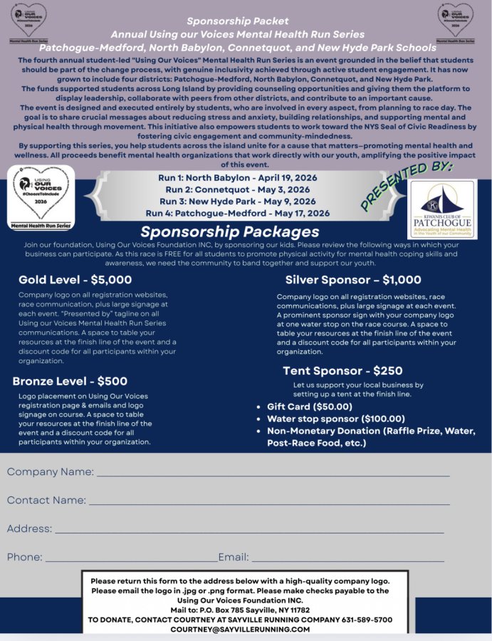 The 4th annual student-led "Using Our Voices" Mental Health Run Series is an event grounded in the belief that students should be part of the change process, with genuine inclusivity achieved through active student engagement. It has now grown to include four districts: Patchogue-Medford, North Babylon, Connetquot, and New Hyde Park.