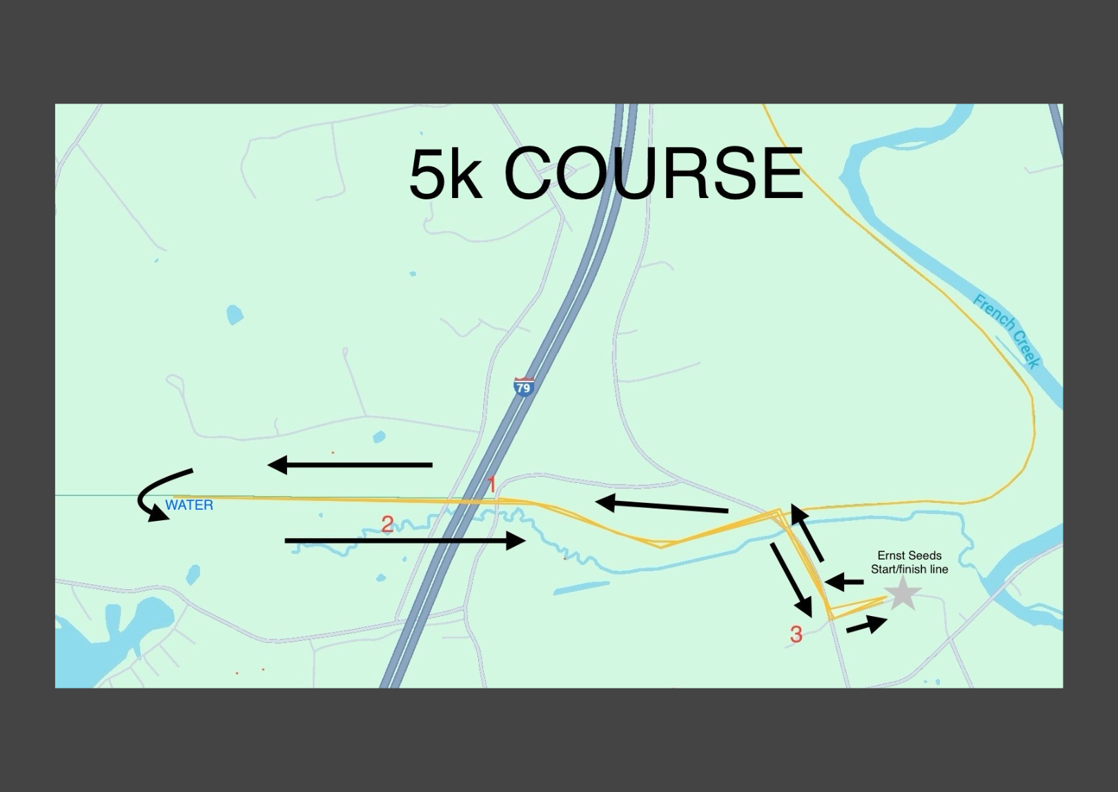 Flat, fast, and built for speed. This scenic course runs primarily along the paved section of the Ernst Trail, with a brief stretch on Mercer Pike Road. Following a historic rail line through the lush bottomlands of the French Creek Valley, the trail immerses runners in a vibrant mix of landscapes—open meadows, marshes, woodlands, and hemlock thickets. The smooth surface and gentle grade make it ideal for chasing personal bests while still enjoying the natural beauty around you.